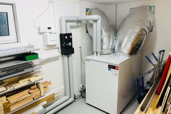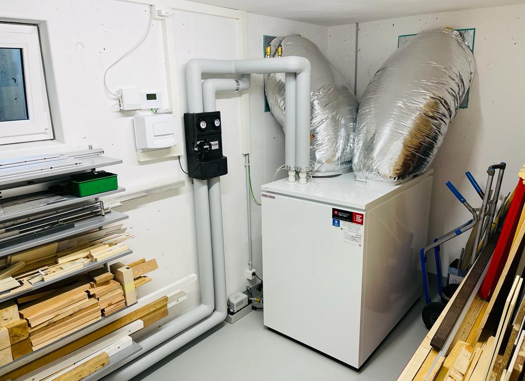 Ersatz einer bestehenden Gasheizung durch eine innenaufgestellte Luft-/ Wasser Wärmepumpe in Möriken.