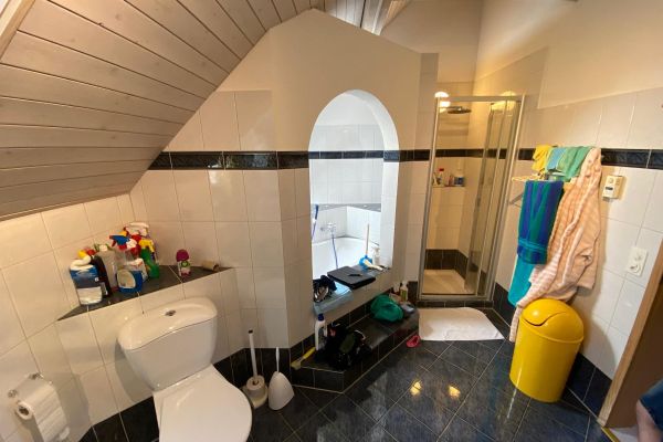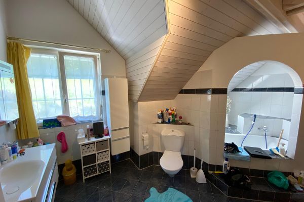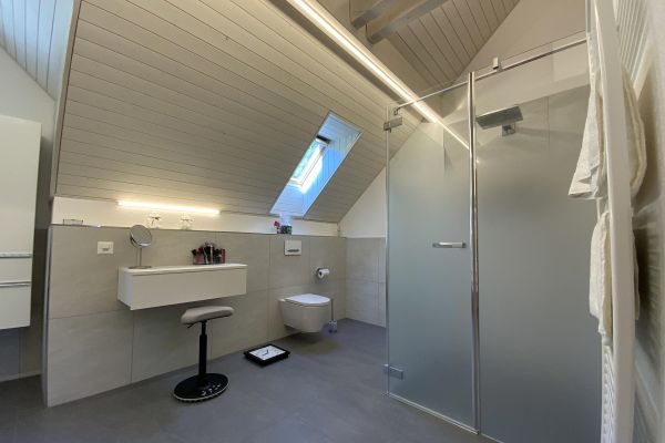 Bad Sanierung, Mägenwil. Entfernen der Badewanne mit Ummauerung und neue Walk In Dusche, Schaffung eines neuen Raumgefühls.